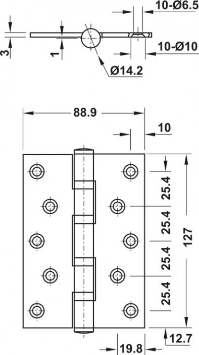 Bản lề lá 2BB 127x89x3mm Hafele 926.41.288