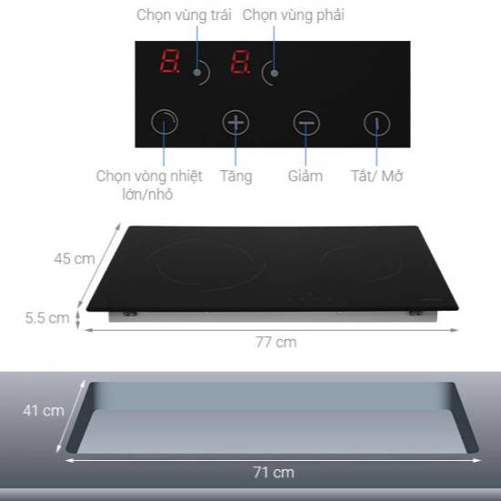 – Bếp điện hồng ngoại, 02 vùng nấu lắp đặt âm