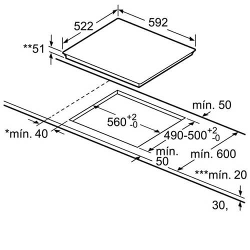 - Kích thước hộc bếp: 560-562R x 490-502S x 59C mm