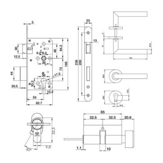 – Trọn bộ khóa tay nắm gạt dành cho cửa đi