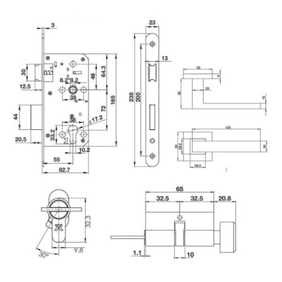 – Ruột khóa : 65mm, 1 đầu vặn và 1 đầu chìa, 3 chìa khóa