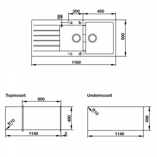 Kích thước cắt đá: Lắp nổi 1140D x 480R mm