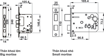 - Kích thước thân khóa trong: 78 x 232 x 30mm