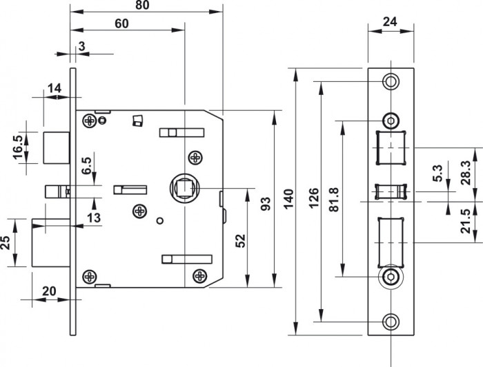 + Kích thước mặt ngoài: 283x64x26.8 mm đã bao gồm tay nắm