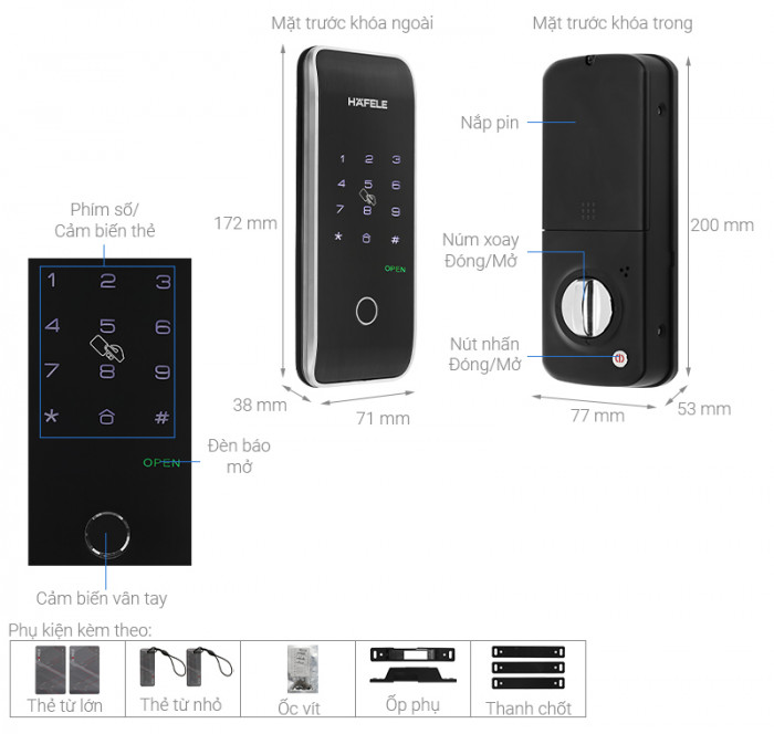 – Khóa sẽ tự động vô hiệu hóa 5 phút khi nhập sai 10 lần liên tiếp mật mã / thẻ / dấu tay.