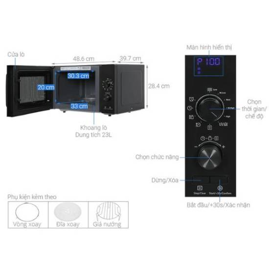 – Lò vi sóng kết hợp nướng để bàn Hafele HW-F23B, là lò vi sóng đa công năng, rã đông thức ăn mà sản phẩm còn tích hợp chế độ nướng đối lưu cùng với nhiều thực đơn nấu tự động
