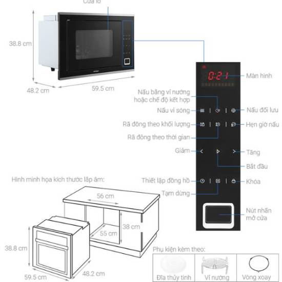 – Công suất vi sóng/nướng/đối lưu : 1.000/1.100/1.500W
