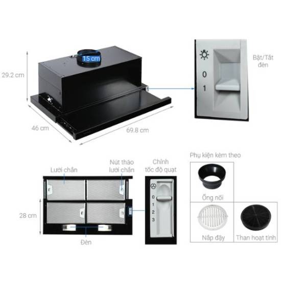 + Phụ kiện đi kèm: than hoạt tính
