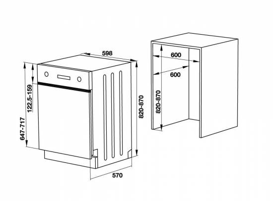 * Lưu ý: Đặc tính máy rửa chén bán phần sẽ không có phần ốp thân phía trước, quý khách cần trang bị thêm tấm gỗ để ốp phía trước trùng với hệ tủ bếp.