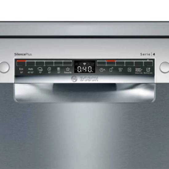 Điều tuyệt vời nhất của máy rửa bát Bosch SMS4HCI48E này là được tích hợp tính năng Home Connect, giúp bạn có thể điều khiển máy rửa bát bằng điện thoại dù ở bất cứ đâu. Đồng thời, máy rửa bát sẽ gửi những thông tin trong quá trình vận hành về điện thoại của bạn, giúp bạn quan sát một cách dễ dàng và thuận tiện.