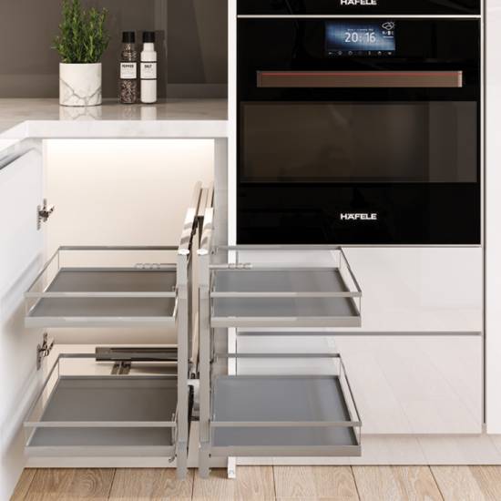 – Hệ thống mở toàn phần cho phép di chuyển cả 4 khay ra ngoài góc tủ
