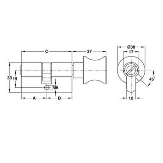 Ruột Khóa Cửa Phòng WC 65mm Hafele màu đồng bóng 916.96.688