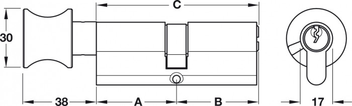 Ruột khóa 65mm 1 đầu chìa 1 đầu vặn Häfele 916.96.666