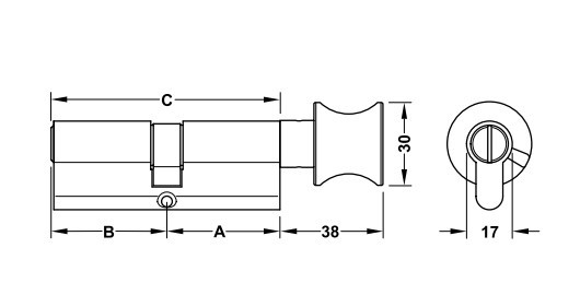 + Ruột khóa vệ sinh Hafele 916.64.292 phù hợp với cửa vệ sinh