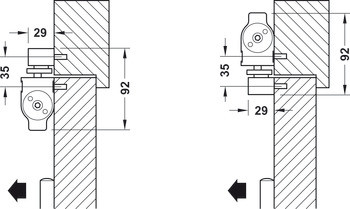 + Cùi chỏ hơi Hafele 931.84.289 thích hợp cho cửa mở trái và mở phải