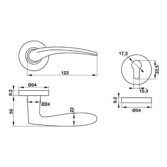 – Trọn bộ gồm : 2 tay nắm gạt, 1 bộ nắp chụp tay nắm, 1 bộ nắp chụp ruột khóa PC, 1 bộ vít