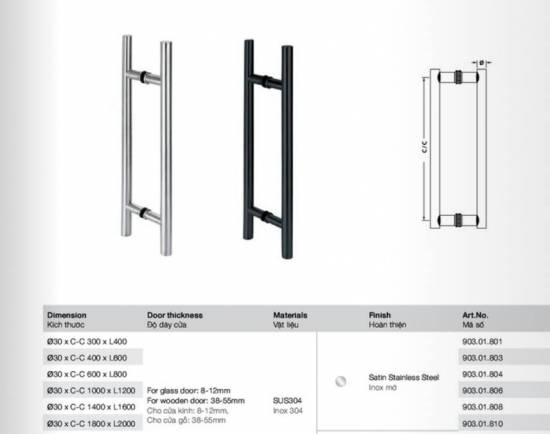 TAY NẮM ĐẨY CHỮ H 1600MM HAFELE 903.01.808