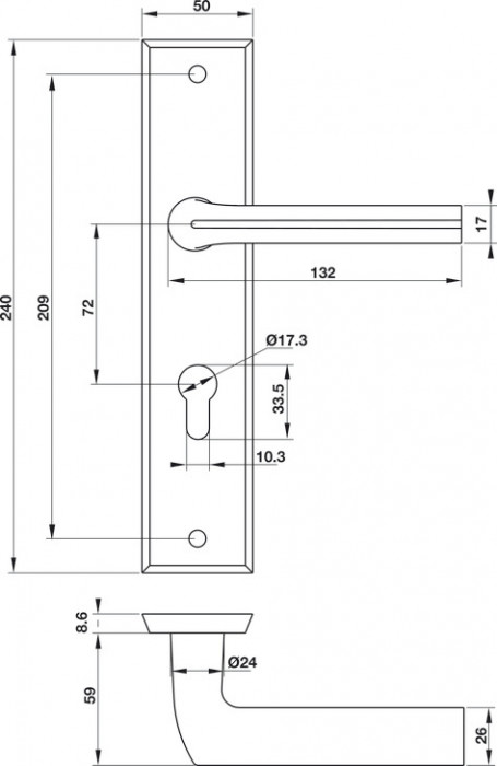 Tay nắm gạt cửa chính đế dài Hafele 903.98.464