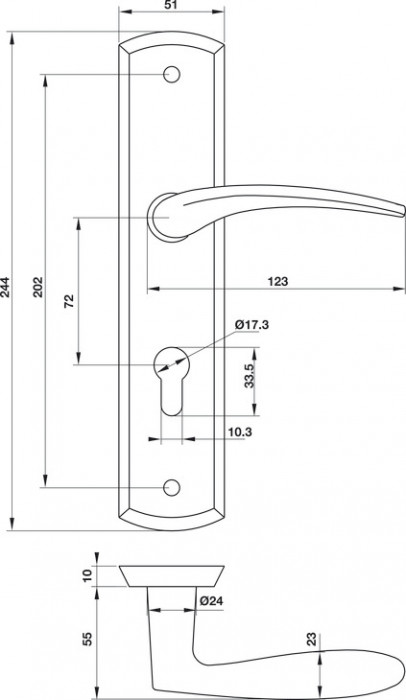 » Trọn bộ gồm: 2 tay nắm gạt đế dài, 1 bộ vít.