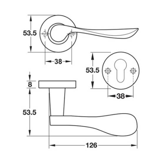 + Bộ tay nắm gạt Hafele 903.92.686 phù hợp sử dụng với cửa thông phòng