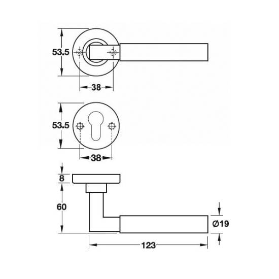 + Bộ tay nắm gạt Hafele 903.92.696 phù hợp sử dụng với cửa thông phòng