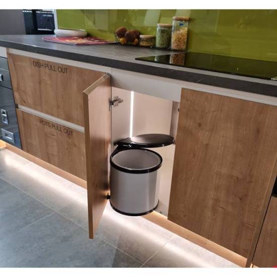 Thùng rác VIOLA được thiết kế với một khoang đựng rác rộng rãi nằm âm tủ, chuyển động theo cơ chế đóng mở cửa tủ. Thùng rác có lớp đựng rác bằng nhựa bên trong để tháo ra vệ sinh thoải mái, lớp ngoài bằng inox cao cấp sáng bóng tạo cảm giác luôn luôn sạch sẽ, chống gỉ không ẩm mốc. Dung tích chứa của thùng rác không quá lớn để rác sẽ không bị lưu cữu lâu ngày khiến vi khuẩn có cơ hội sinh sôi.