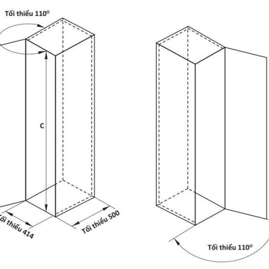 – Chiều rộng lọt lòng ( R ) : tối thiểu 412mm