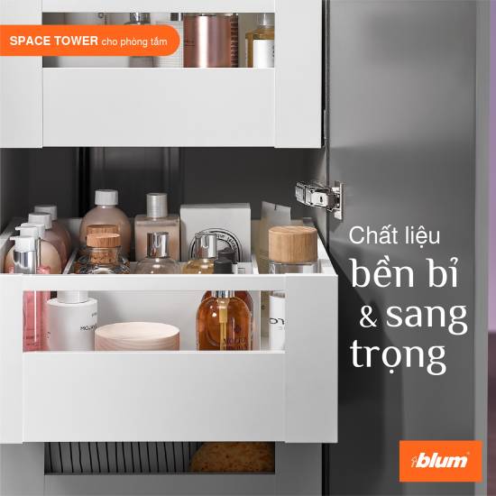 Tủ kho SPACE TOWER từ Blum vốn được biết là “tháp lưu trữ khổng lồ” cho nhà bếp và phòng tắm với những tiện ích: