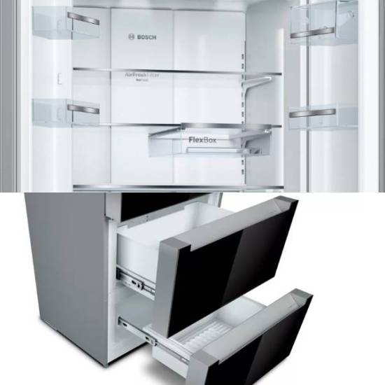 Tủ lạnh Bosch KFN96PX91I với ngăn chứa VitaFresh đảm bảo dữ trữ thực phẩm lâu hơn gấp 3 lần ở xung quanh 0ºC. Hai ngăn riêng biệt chứa thịt riêng và cá riêng để đảm bảo không lẫn mùi giữu hai thực phẩm. Ngăn chứa rau củ lớn với nút trượt điều chỉnh độ ẩm giúp lưu trữ rau quả lâu hơn, giữ lại vitamin tốt cho thực phẩm.