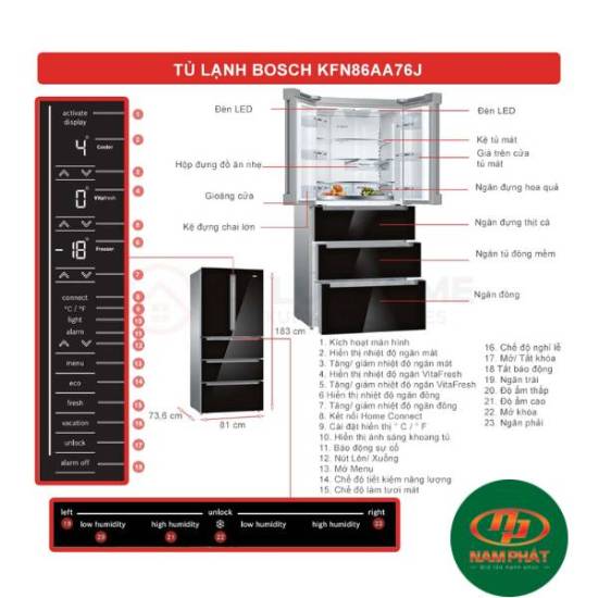 Bạn đang có nhu cầu mua TỦ LẠNH SIDE BY SIDE KFN86AA76J chất lượng, uy tín nhưng chưa biết chọn địa chỉ nào. Hãy đến với Thiết bị Nam Phát chuyên cung cấp các sản phẩm như: Lò nướng, Lò vi sóng, Hút mùi, Tủ lạnh, Tủ rượu, Bếp từ, Bếp điện, Máy rửa bát, Máy giặt, Máy sấy, Phụ kiện nhà bếp, Phụ kiện tủ bếp, Khóa và phụ kiện cửa…Các sản phẩm được nhập khẩu chính hãng từ Châu Âu đảm bảo chất lượng, thời gian bảo hành dài, đội ngũ tư vấn chuyên sâu, đội ngũ lắp đặt chuyên nghiệp, cam kết giá tốt nhất thị trường.